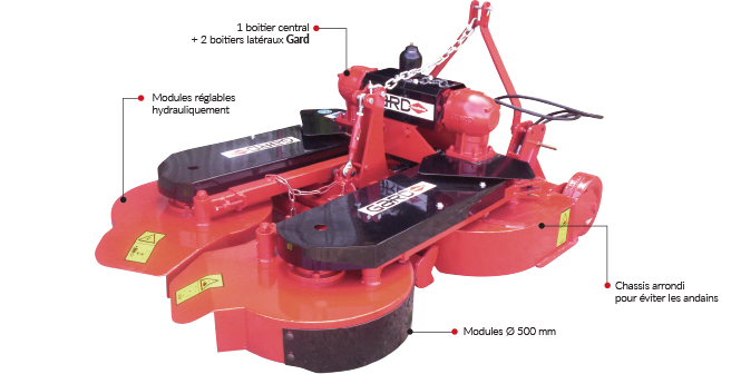La Gyrotondeuse GTS2 permet d’entretenir l’espace inter-rang des vignes enherbées. Avec ses deux satellites à voie variable, l’enherbement est maîtrisé jusqu’au plus près des pieds. Sur les sols réguliers, avec une vitesse d’avancement de 5 km/h recommandée, GTS2 donne un résultat remarquable. L’enherbement inter-rang est propre et homogène.