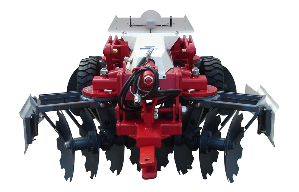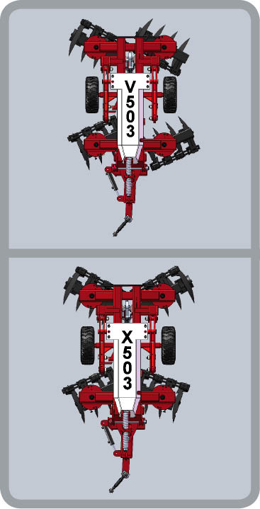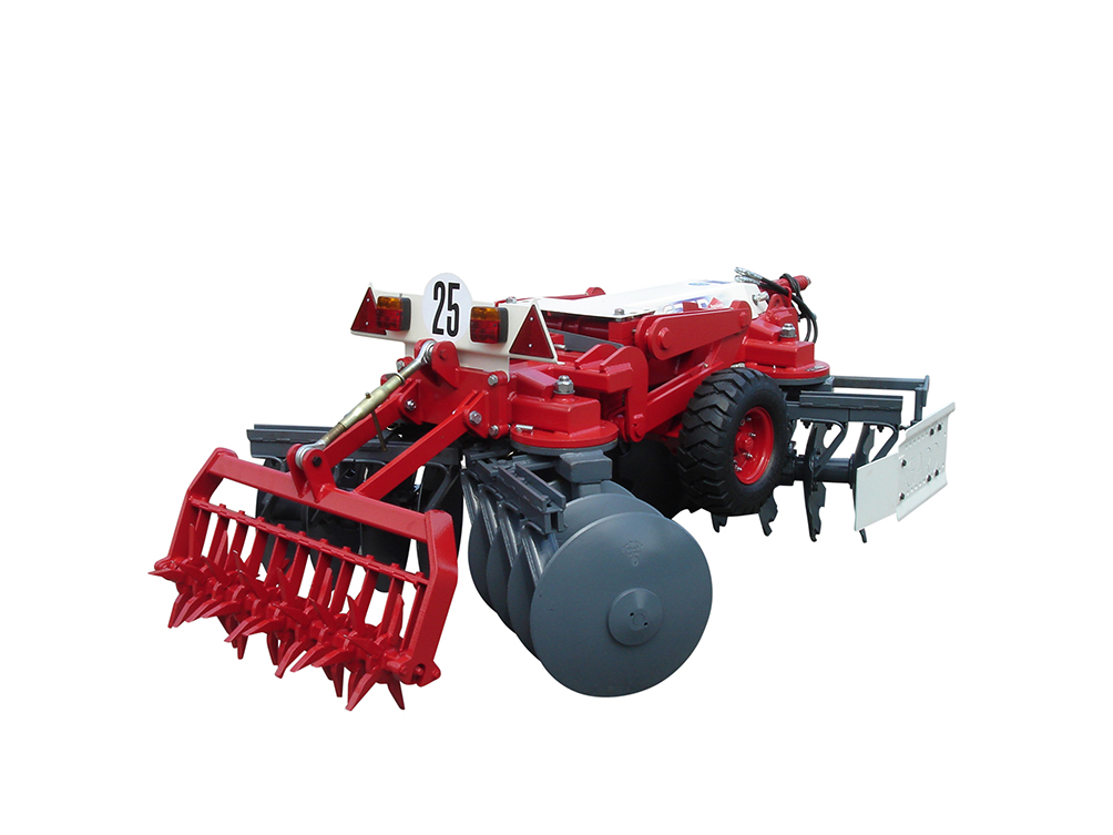 Avec un rapport de 100 kg par disque, le châssis autoporté vigneron X503 pénètre sans effort le sol sur 10 à 15 cm de profondeur permettant le désherbage tardif.