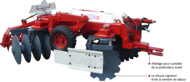 En effet, son attelage sur bras contrôle la profondeur de travail à l’avant et la roue assure le transport ainsi que le contrôle de profondeur à l’arrière.